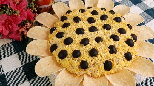 Салат "Подсолнух". Делюсь рецептом праздничного салата с курицей и грибами