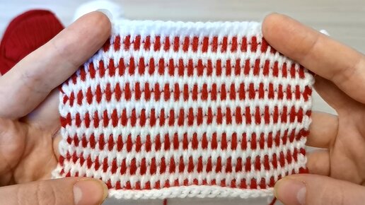 Простой двухцветный узор крючком в технике тунисского вязания