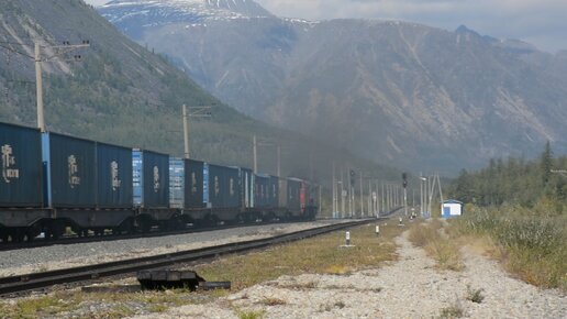 Тепловоз 2ТЭ10М с поездом на станции Сюльбан, БАМ.