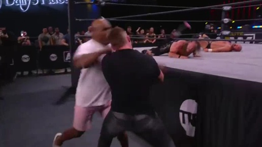 Тайсон оказался плохим актёром.. Он отправил в нокаут рестлера в постановочном шоу