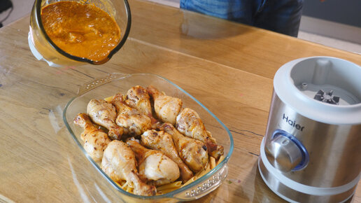 Беру куриные ножки и макароны. Заливаю томатным соусом(делюсь рецептом)