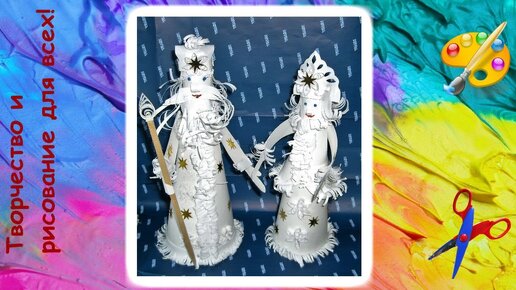 Просто! Взяла ватман и сделала Снегурочку и Деда Мороза.