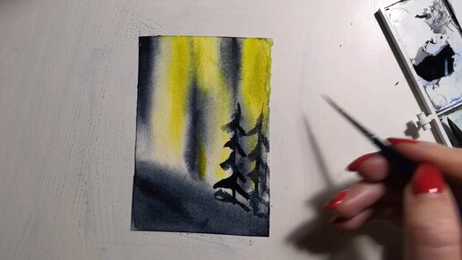 Снежная зима акварелью 🎨