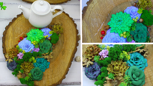 Невероятно красивая композиция с суккулентами на спиле дерева / Как сделать суккуленты (5 вариантов)