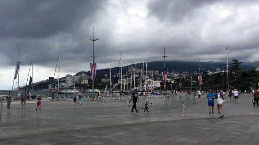 Пасмурно. Накрапывает дождь. Ялта за два дня до разрушительных проливных дождей и схода селей.