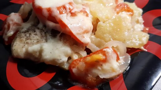 Курочка с картошечкой , да еще под сырной корочкой. Пальцы оближешь после