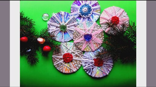 Новогодние украшения своими руками . Снежинки из дисков .