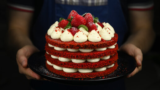 Очень красивый и простой, Новогодний торт Красный бархат. Так празднично и так вкусно!