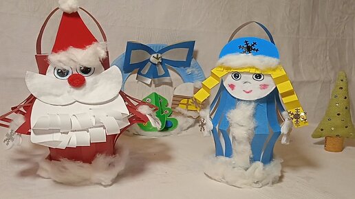 Дед Мороз и Снегурочка из 5 ватных дисков, бумаги и ваты. Новогодние поделки