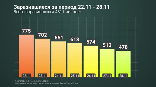 Динамика заболеваемости коронавирусом в Крыму с 22 по 28 ноября