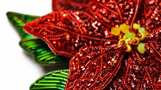 3 Урок. Мастер-класс Пуансеттия. Вышивка средних лепестков швов насыпь.