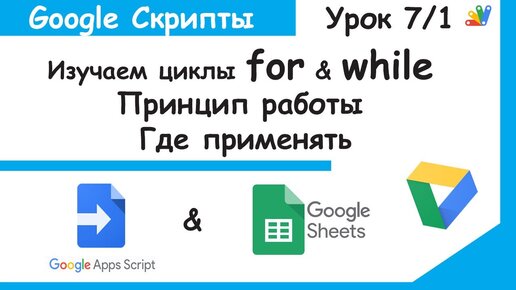 Google Apps Script. Циклы for и while. Скрипты Google Sheets Урок 7/1.