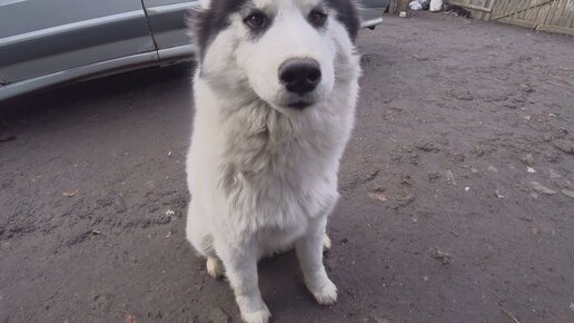 Хаски учится давать лапу. Стая в радосте, перед хозяином.