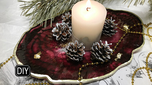 Новогоднее блюдо из эпоксидной смолы с декором.