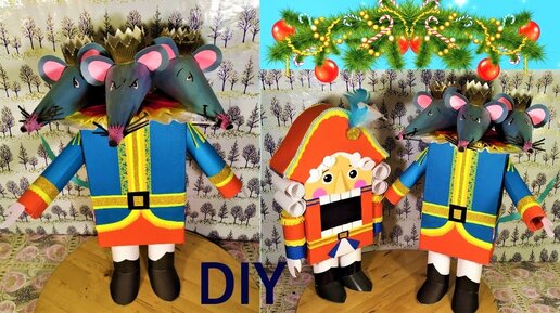 Новогодние поделки. Как сделать Мышиного короля, сказки Щелкунчик из коробки