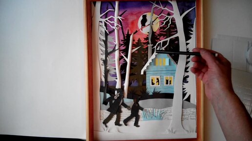 Зимние поделки, картина 3d из бумаги. Зимний вечер.