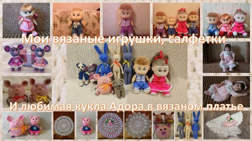 Мои вязаные игрушки, салфетки и любимая кукла Адора в вязаном платье)