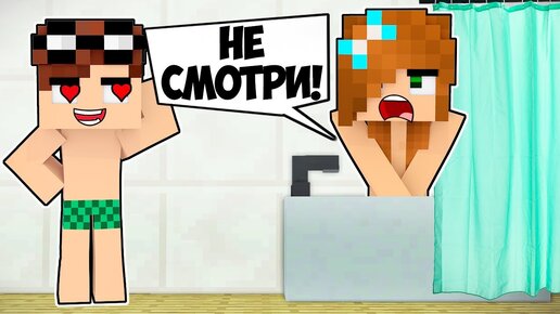 ДЕВУШКА И РЕБЕНОК Как пройти майнкрафт, но слежу за девушкой в душе ! НУБА И ПРО ВИДЕО MINECRAFT
