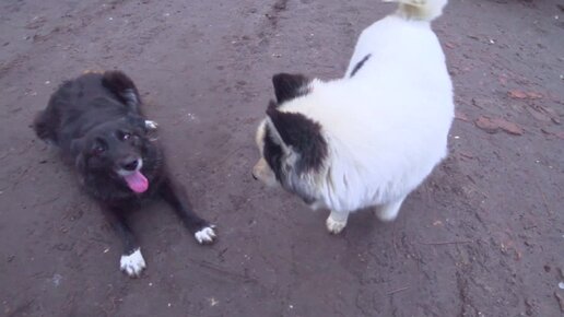 Питомцы ещё хотят хлеба после раздачи . Хаски не напьётся воды .