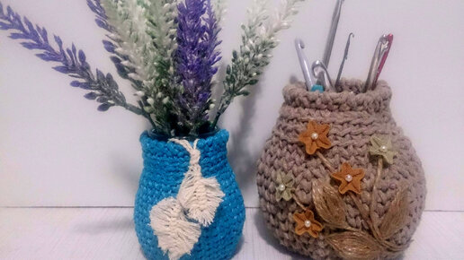 Декоративные вазочки крючком из шнура