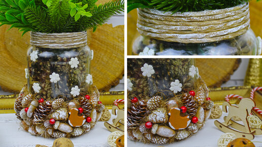 Необычная красивая Новогодняя ваза из стеклянной банки своими руками