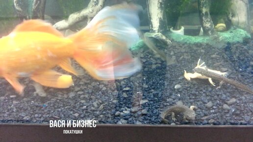 Тритон кусает за хвост золотую рыбку