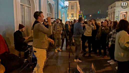 Уличные музыканты «зажигают» у метро Невский проспект с каверами на песни «Тополиный пух» и «Медведица»