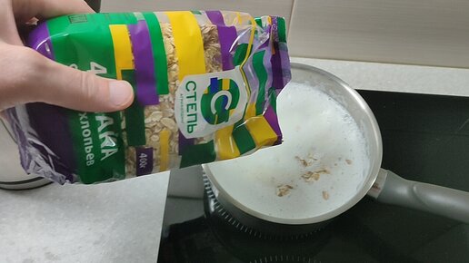 Быстрый завтрак из смеси хлопьев 4 злака на молоке.