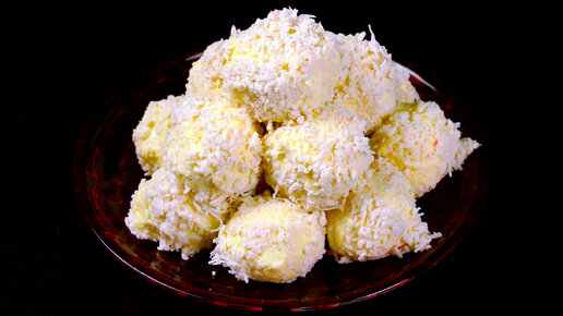 Сырные шарики Рафаэлло в крабовой стружке