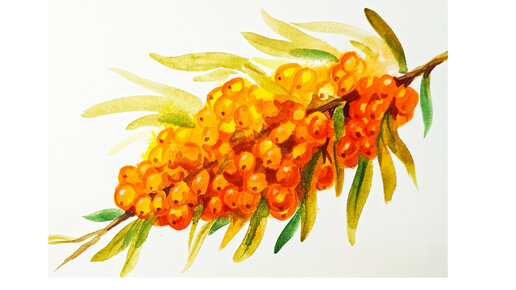 Облепиха - акварельный набросок.