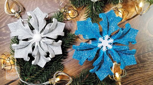 Быстрая снежинка из глиттерного фоамирана. Новогодний декор. Поделки из фоамирана на конкурс в школу.
