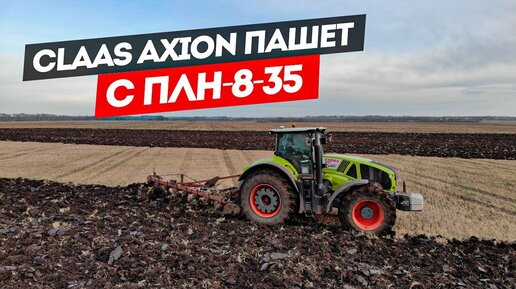 Немец - трактор Claas Axion 940, с советским плугом ПЛН-8-35.