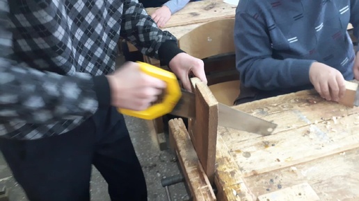 Наши семиклассники из старых досок, взятых на даче, решили смастерить современный английский танк