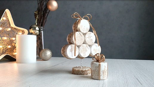 Новогодний декор из пластиковых крышек.