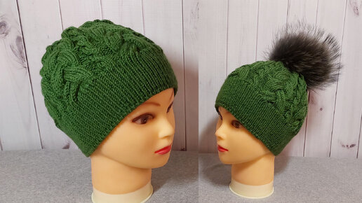 Мастер- класс вяжем объемную женскую шапку спицами с фигурными косами и шикарным фабричным краем 🔥🔥🔥