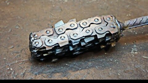Нож из цепи от старой пилы СССР. Дамасская сталь