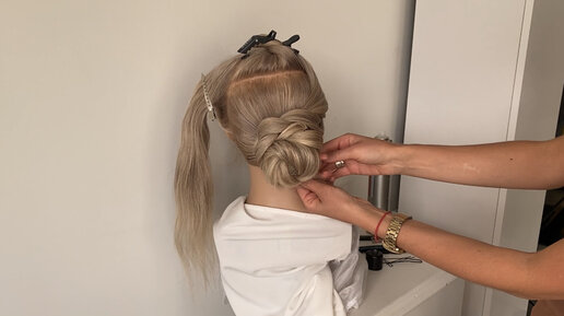 Нежный пучок в быстрой и простой технике. Красивая прическа с валиком своими руками