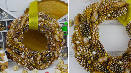 Новогодний или Рождественский венок на дверь из шишек и желудей / Делается очень просто