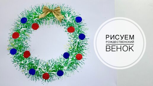 Я использовала трубочки для сока, вместо кистей, чтобы нарисовать этот рождественский венок
