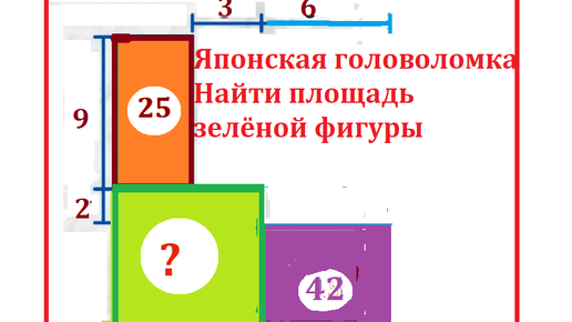 Японская головоломка. Найти площадь зелёной фигуры по чертежу