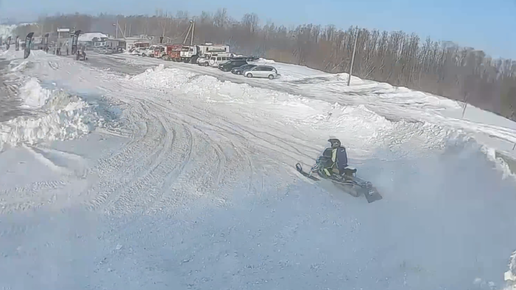 Обозреваем с дрона соревнования на снегоходах. Со всех сторон облетаем трассу, спортсменов и окрестности