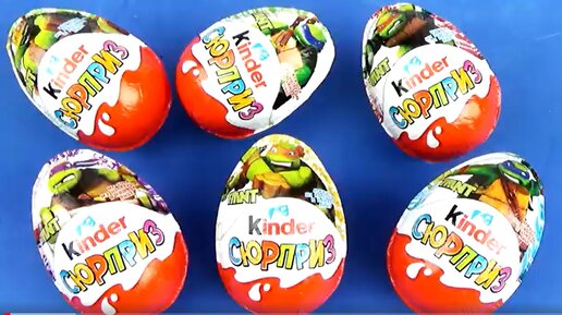 Черепашки Ниндзя игрушки в киндер сюрпризах - открываем киндеры и рассматриваем игрушки