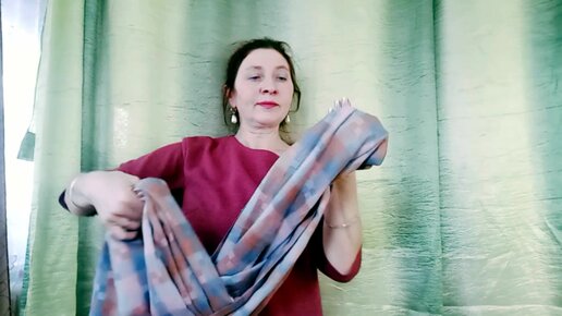 Мягкий палантин в нежную клетку повязала на пальто с воротником-стойкой. Номер 16