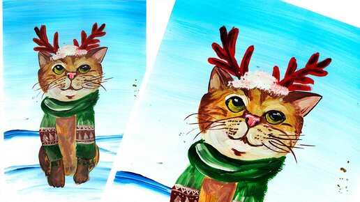 Рисуем Новогоднего кота. Как нарисовать кота. Рисуем новогодний рисунок.