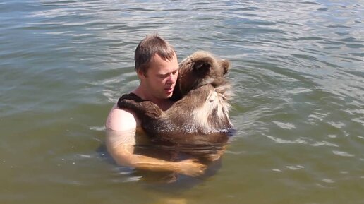Первое купание с медвежонком Мансуром