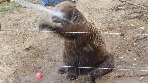 Межвежонок Мансур под душем