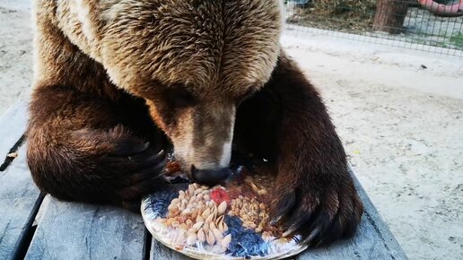 Медведь Мансур получил торт ореховый от друзей