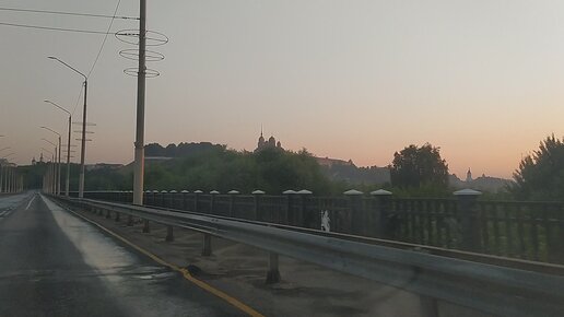Рассвет. Едем по мосту над Клязьмой во Владимире