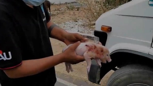 Это поросенок был так напуган, но все же ему помогли добрые люди несмотря ни на что