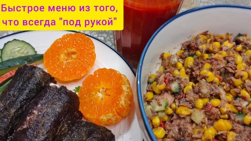 Салат из тунца за 5 минут, роллы с творогом и томатный сок из 90х